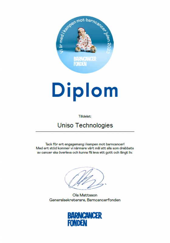 Även i år har Uniso valt att stödja Barncancerfonden i deras viktiga arbete med att bekämpa barncancer.